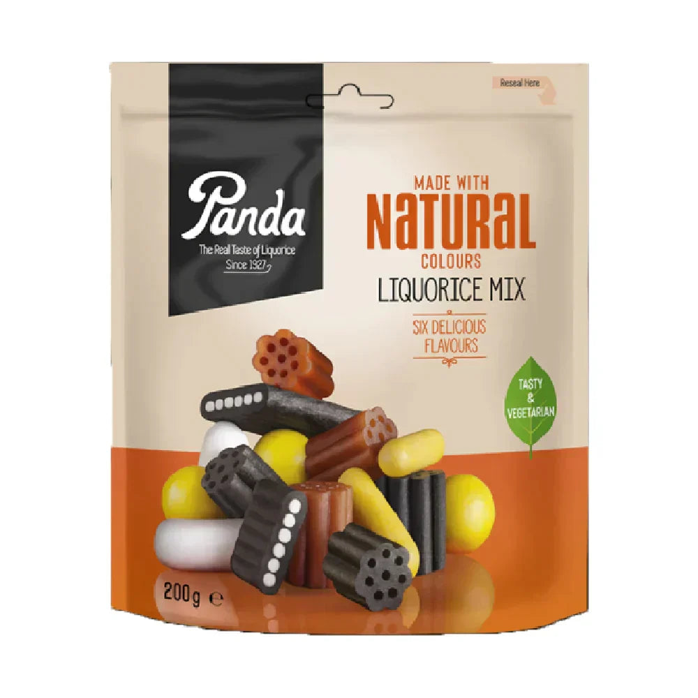 Delicious mix of six different liquorice products made with natural colours. Resealable bag helps keep licorice candy fresh and tasty, right down to the last piece.