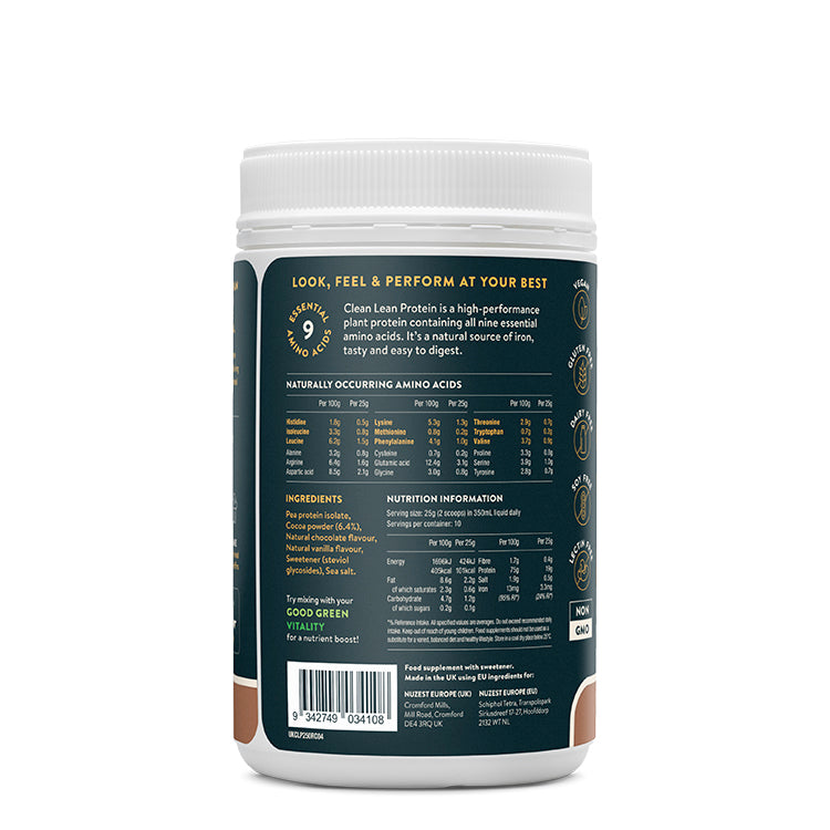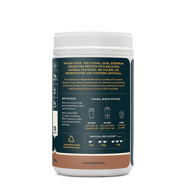 Made from European Golden Pea protein, Clean Lean Protein is 100% natural, free from common allergens, easily digested, and delicious. High in protein but low in sugar and carbs, it supports vitality, recovery & repair.