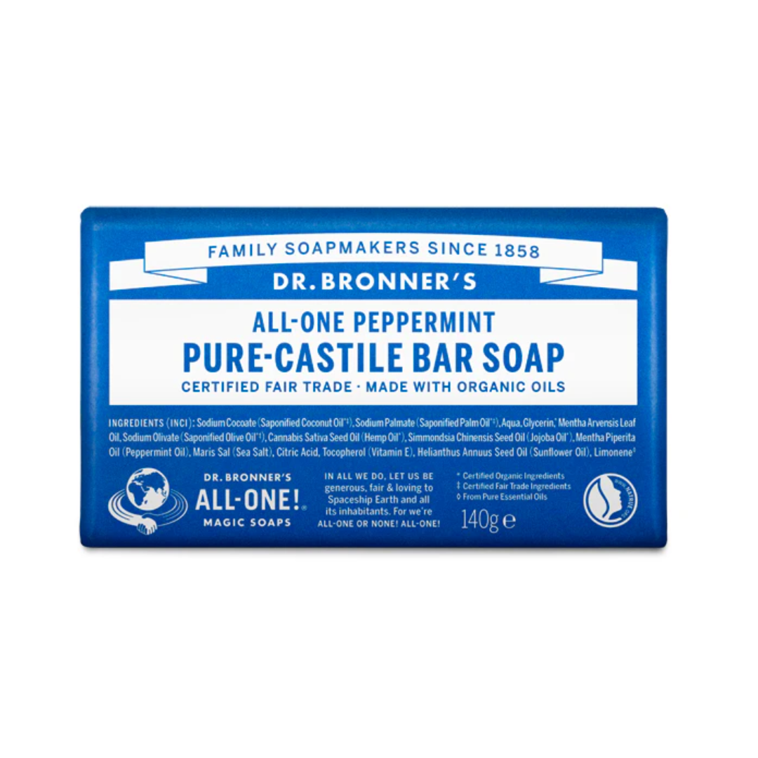 Dr. Bronner's Pure-Castile Bar Soaps are biodegradable-vegan, gentle and versatile, good for washing body, face or hair! Enjoy only 2 cosmetics, enough sleep & Dr. Bronner's Magic Soaps to clean-body-mind-soul-spirit instantly uniting One! All-One!!