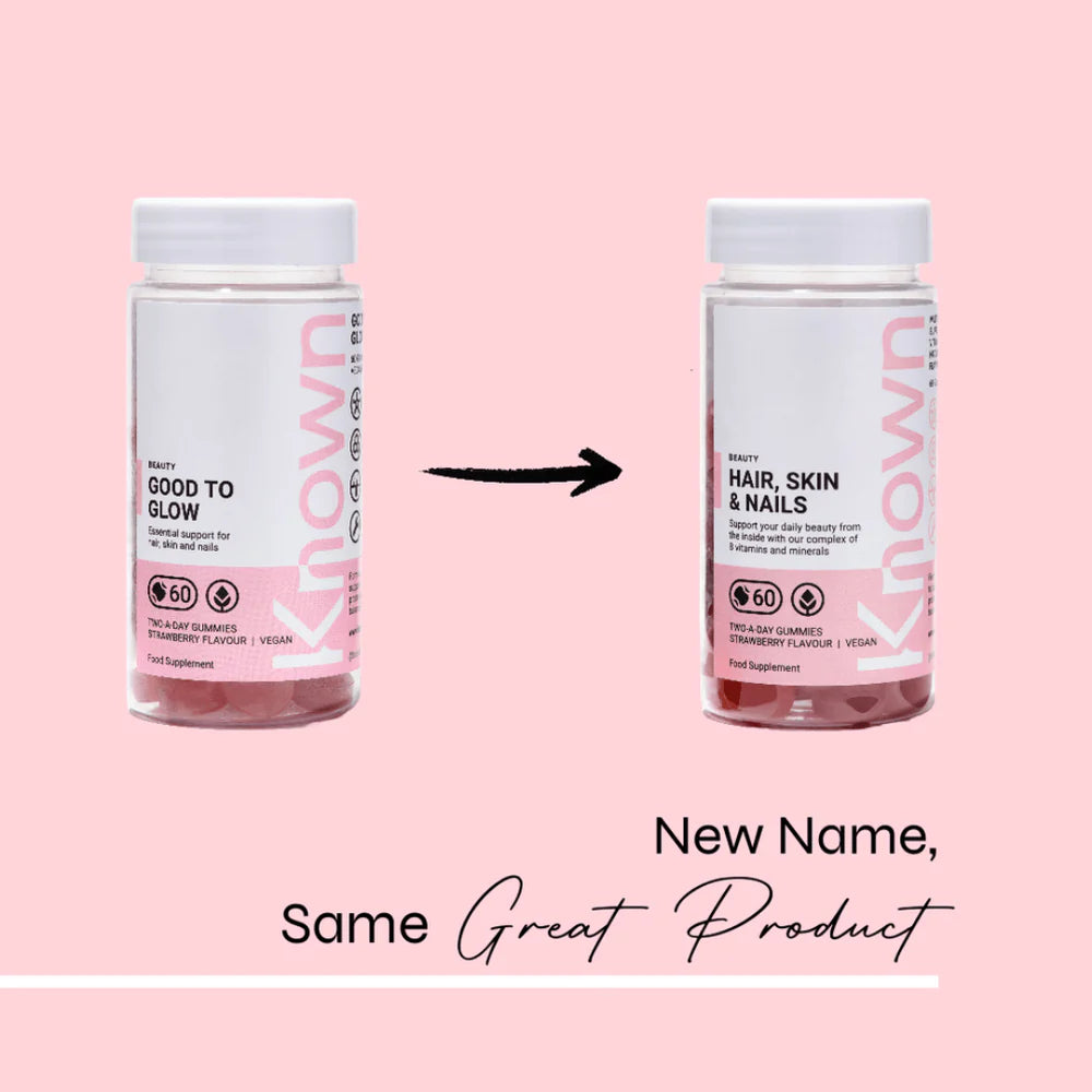 Known Nutrition Good to Glow Hair Skin and Nails Strawberry Vegan Gummy Supplements x 60 are packed with a powerful blend of scientifically proven ingredients.