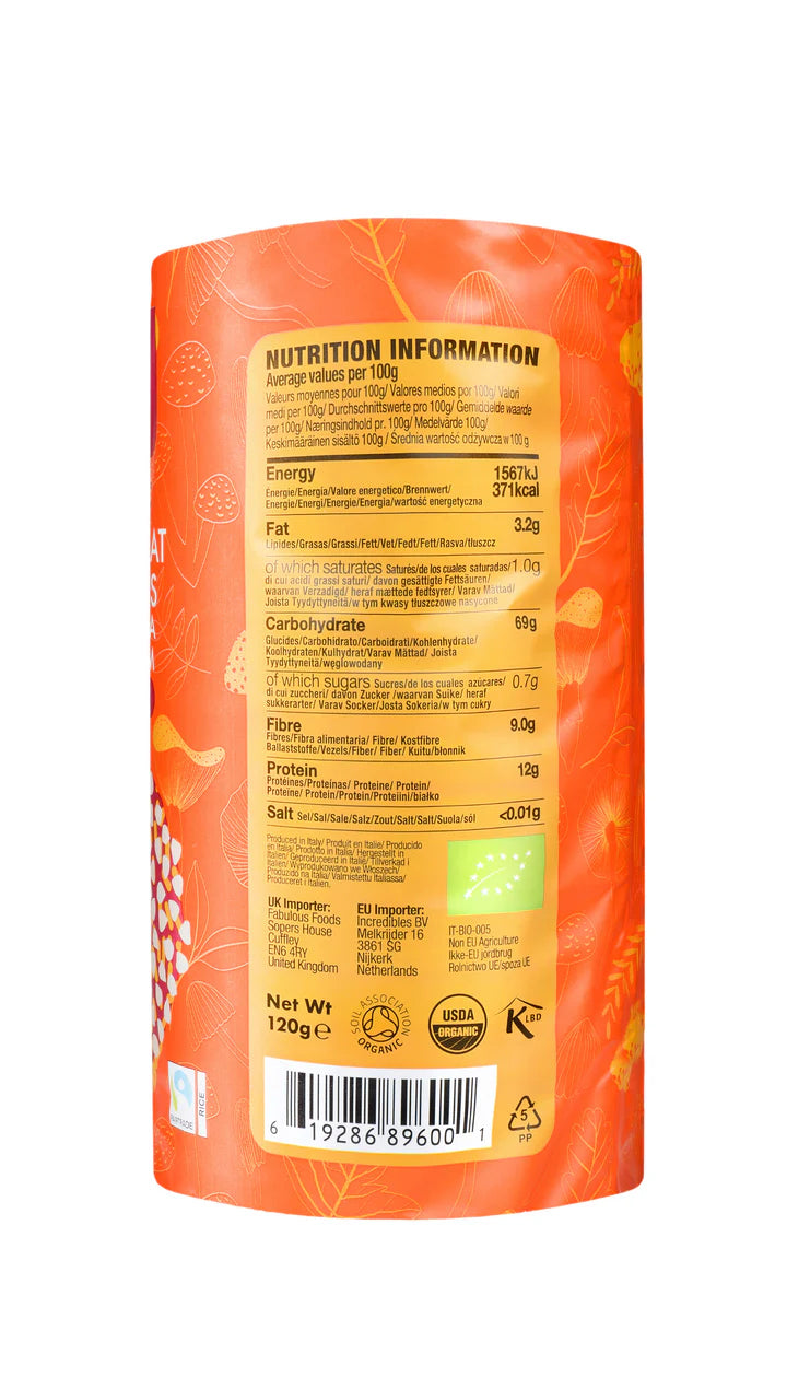 Ingredients: Organic Buckwheat (67%), Organic Brown Rice* (30%), Organic Chaga Mushroom (Inonotus obliquus) (3%).