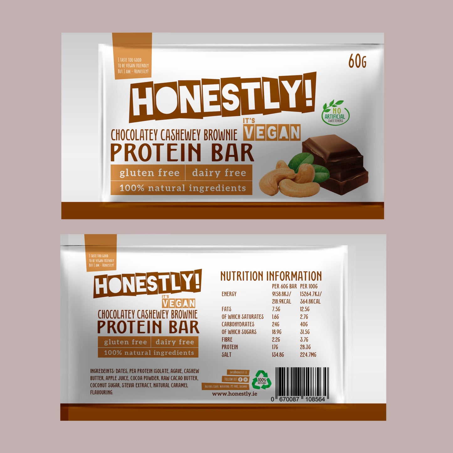 Honestly! Chocolate Cashew Protein Bar VEGAN 50803B