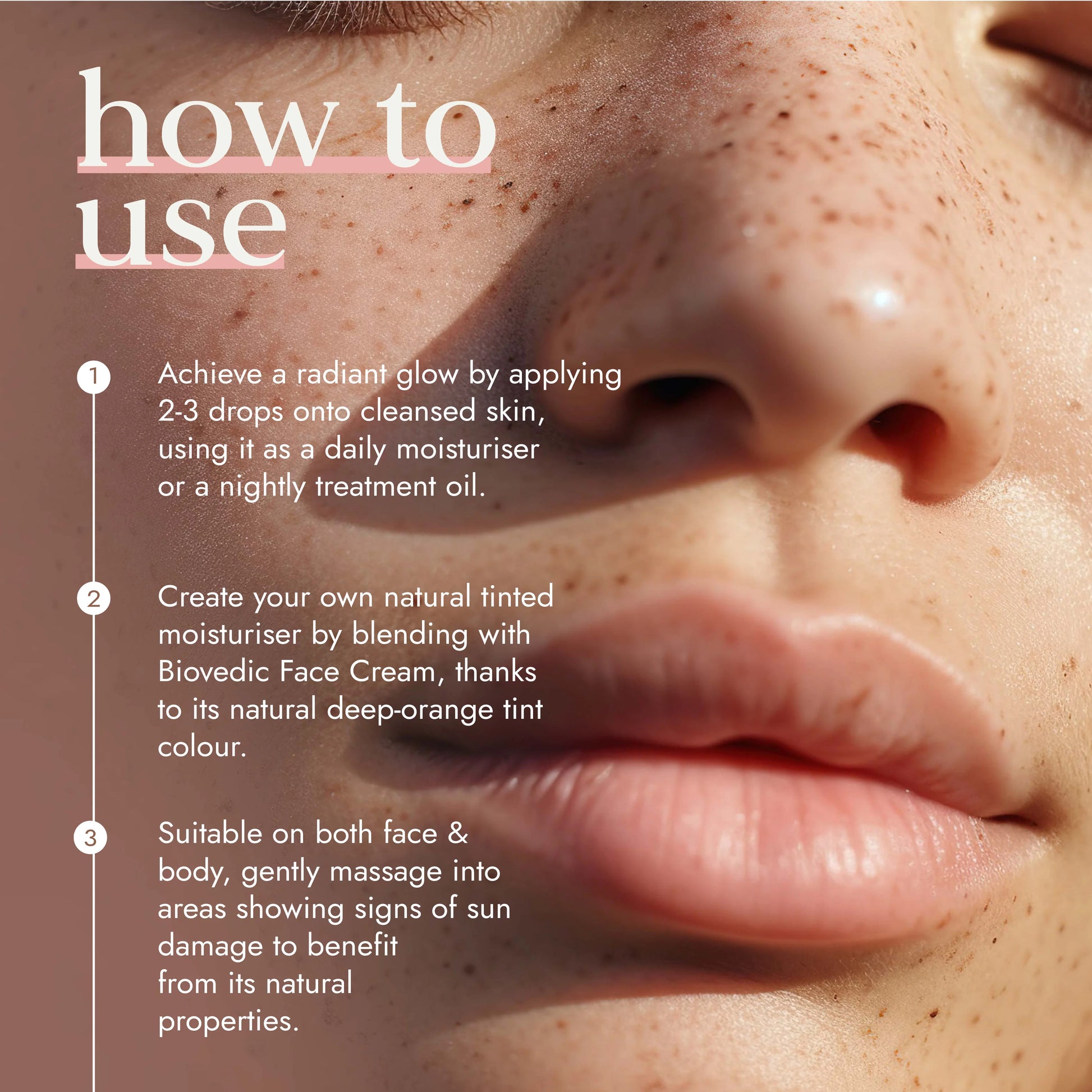 - Targets:Sun damage, dull & uneven skin.